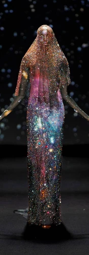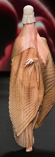 Fashion serves as a powerful art form, with design and styling offering designers a unique way to communicate with their audience. Visionaries like Thierry Mugler masterfully channel this dialogue into their collections. Mugler’s iconic La Chimère gown, from his 1997 collection, vividly conveyed his fascination with the intersection of humanity and nature. As Lifestyle Asia describes, the dress “dazzles in all colors of the rainbow, with innumerable colourful pearls, feathers, scales, real hair, and a golden corset,” establishing it as one of the most extravagant and memorable pieces in haute couture history.