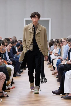 Anderson mentioned his obsession with certain archival Dior pieces, particularly that dress that was an inspiration for elements within the collection. As he stated in a TikTok by Loic Prigent, “There are three dresses I was obsessed by Christian Dior in my life. One is the Delft… so we applied it to a cargo shorts.”