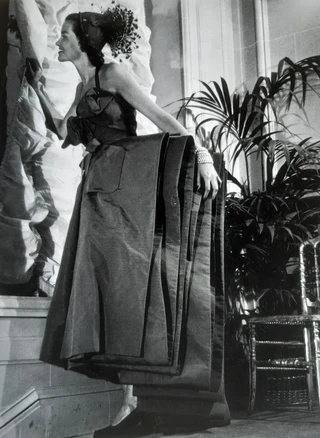 One of the show’s most talked about moments was the nod to Christian Dior’s Haute Couture Automne/Hiver 1948-49 collection, specifically a dress known for its diagonally layered fabric.