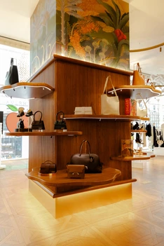 The luxury retail store is exceptionally expressive in its retail design, featuring inviting colors and warm tones crafted by architect Laura Gonzalez. Known for her maximalist and warm style, Gonzalez has infused the store’s vibrant design with its own unique narrative. Pantaleón describes the store’s structure, noting that the ground floor maintains a clean aesthetic, while the upper level with the salon boasts more decor and an artful ambiance. “It’s meant to change, and that’s the beauty behind it… we call it a French apartment because in an apartment you have a kitchen, you have a bathroom, you have a bedroom, living room, and everything is different, that’s the setup here.” Their unique approach distinquishes them from other department stores like Bloomingdale’s and Saks. It doesn’t feel like a deparemnt store because they’re not set up like one. The store’s design is intentionally crafted so that each section feels like entering a new boutique. It’s highly interactive, incorporating various elements that attract customers and encourage engagement, ultimately building a memorable and fun customer experience.